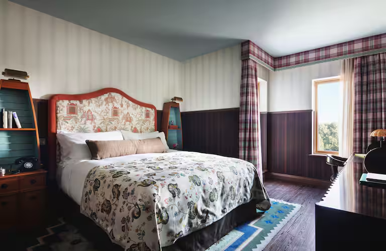 Including a full English breakfast for 1 person. This Graduate Rooms include one plush king bed and a writing desk. Each room features a Premium Plus Serta mattress and luxurious bathroom amenities for a relaxing stay. Graduate rooms are fitted with an HDTV complete with smart phone casting, an espresso machine, a mini-fridge with complimentary water, USB ports, and modern amenities. With playful nods to punting and campus icons, these rooms are true Cambridge retreats.